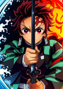 Experience the determination and fiery spirit of Tanjiro Kamado as he battles with his Water Breathing techniques. This dynamic poster captures the essence of his character from the iconic anime series Demon Slayer.